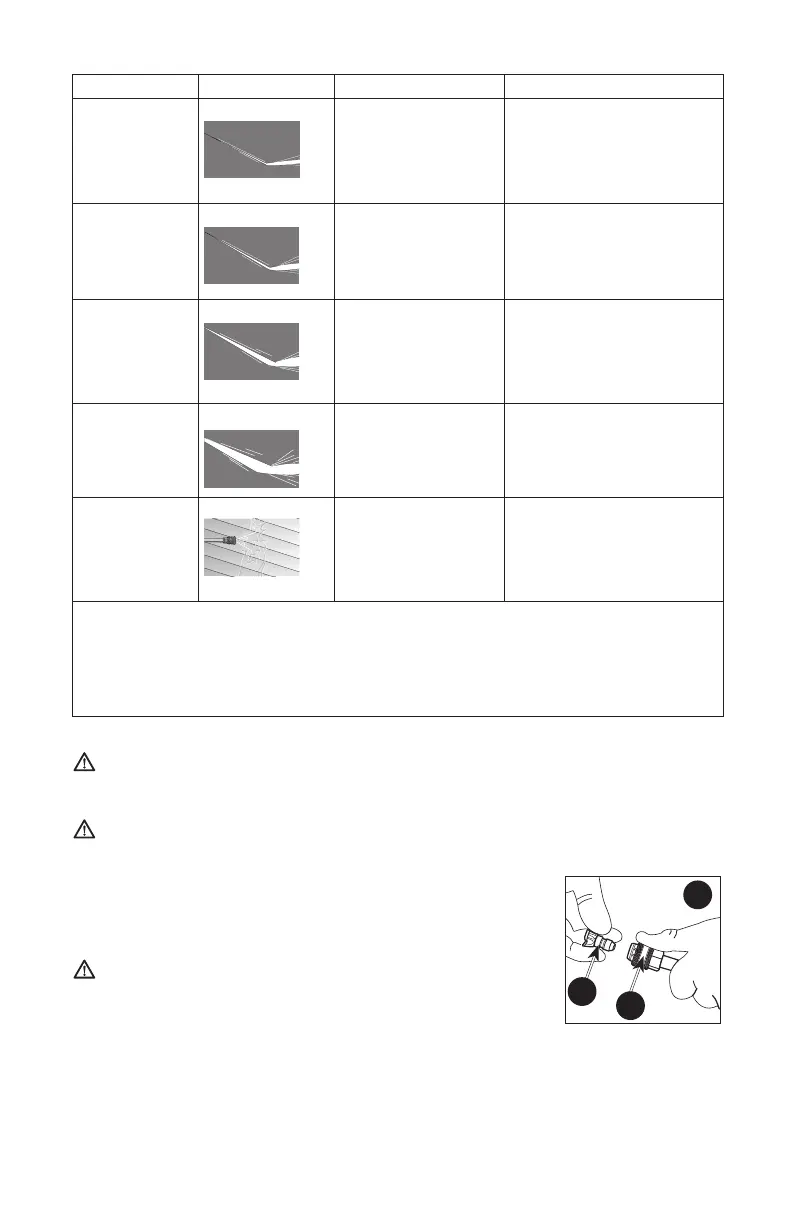 attempt to change nozzles while pressure washer is running. Turn engine off