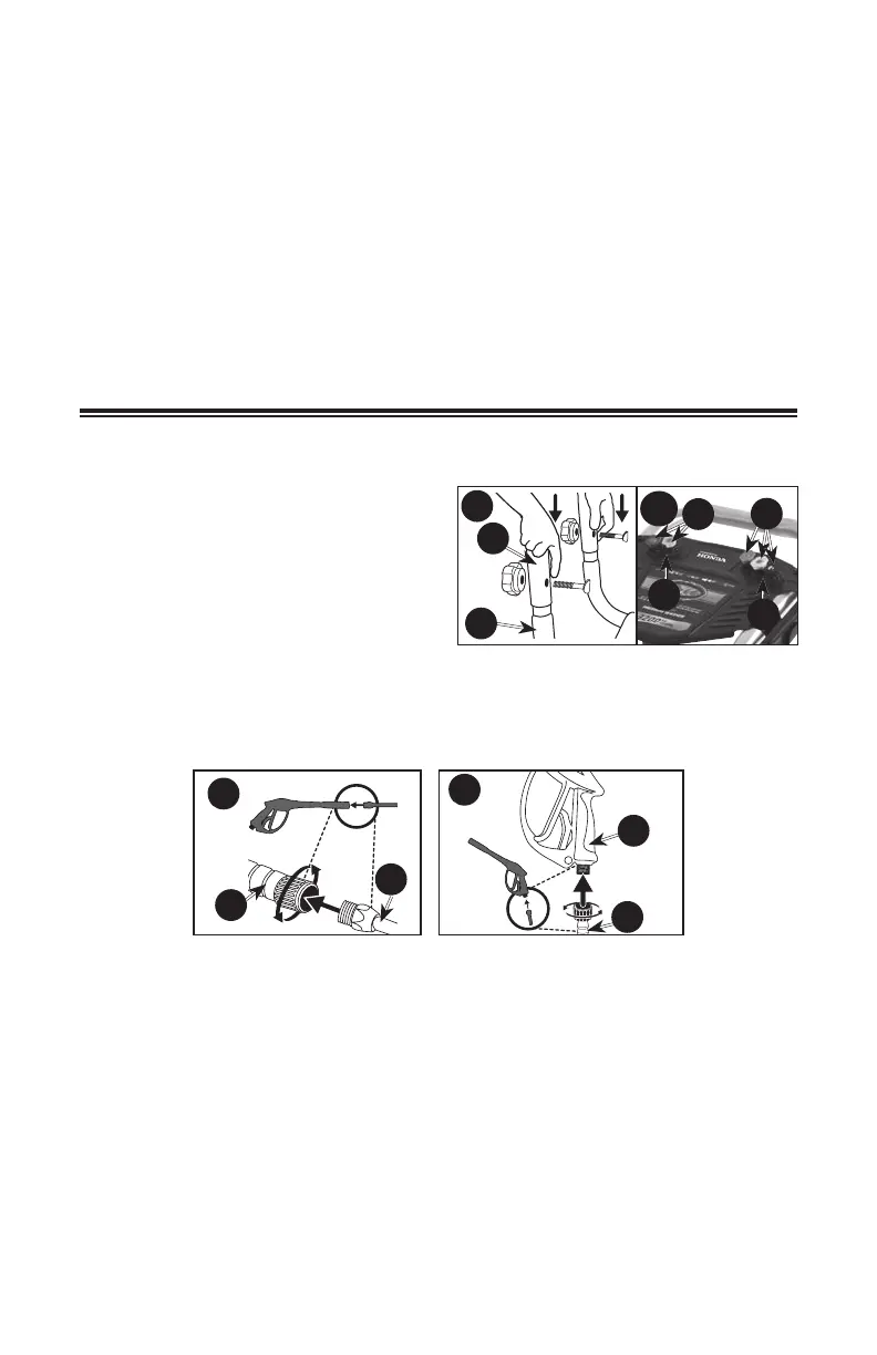 6. Attach high pressure hose (C) to gun (D). Tighten se cure ly.