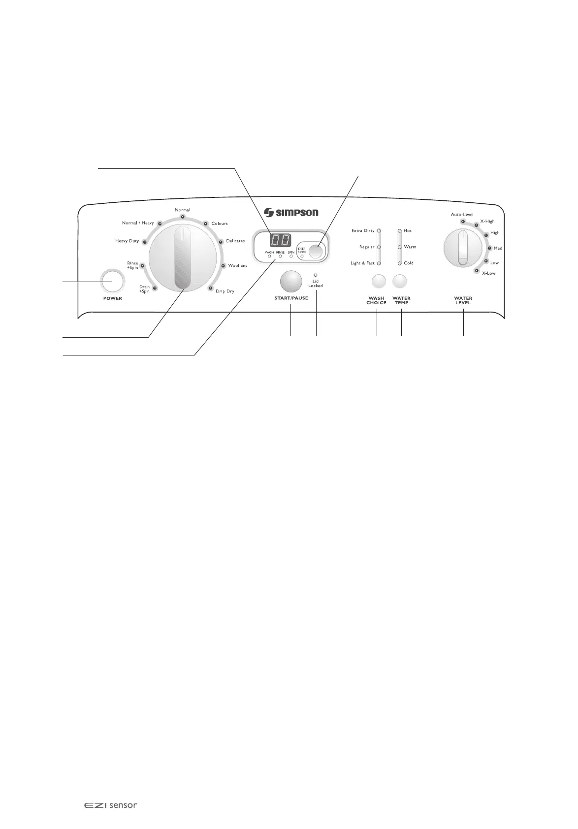 Selects and deselects the deep rinse option see page 10.