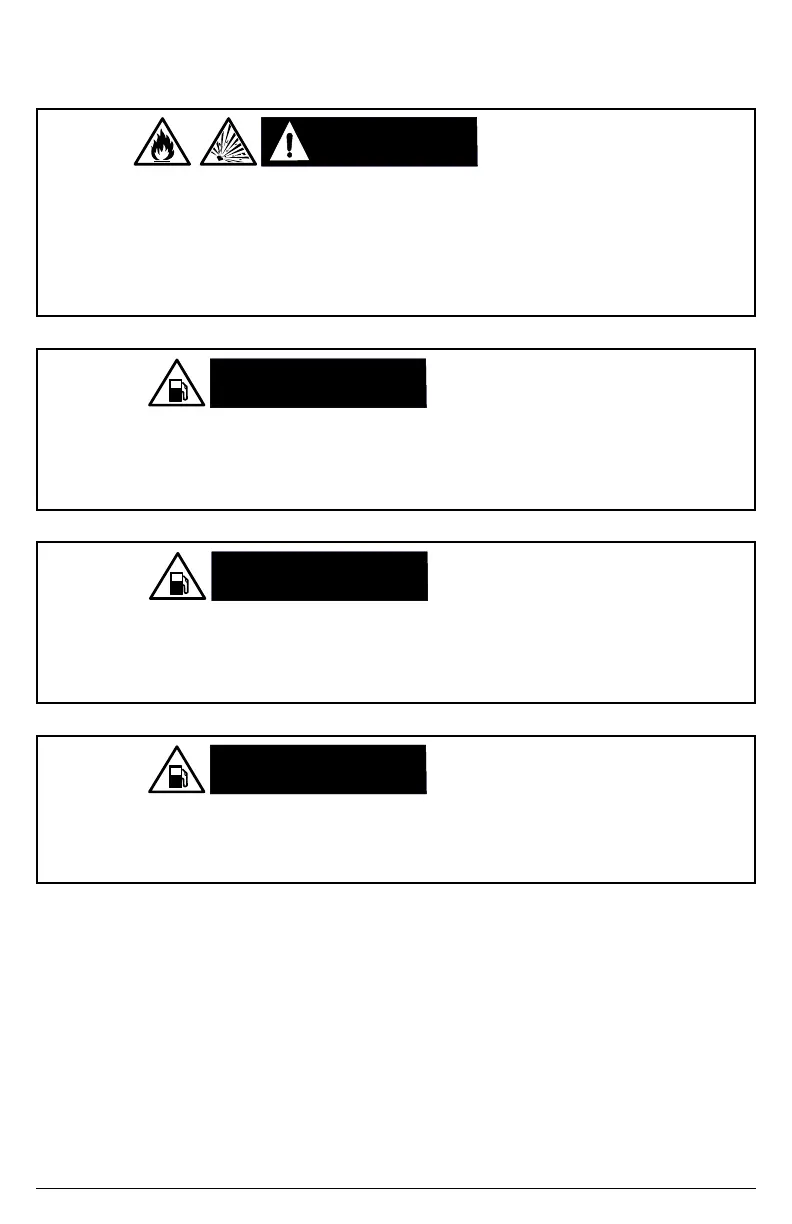 Gasoline is highly ammable and gasoline vapors are extremely explosive. Fire and