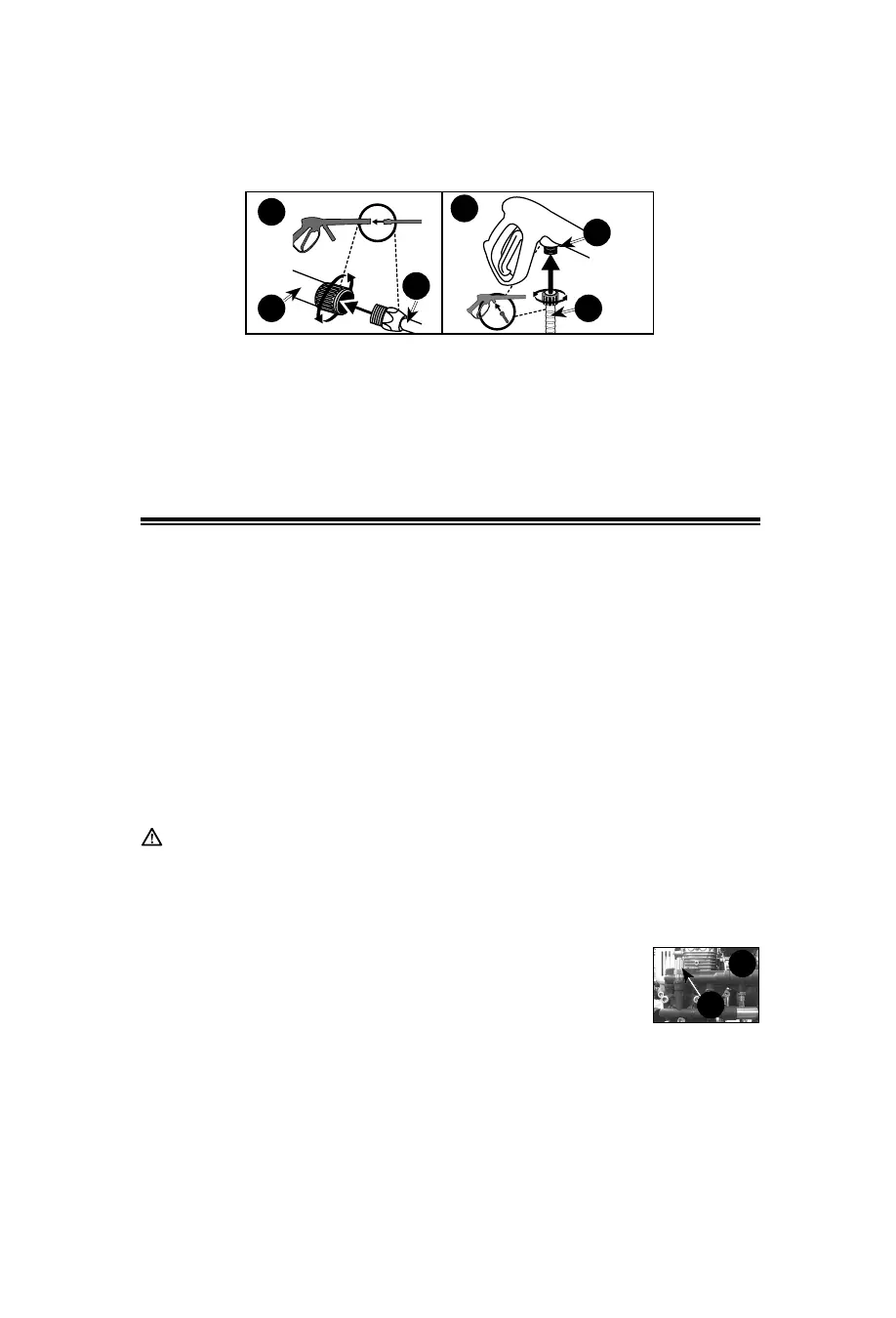 6. Attachez le boyau à haute pression (C) au pistolet (D) et bien serrer.