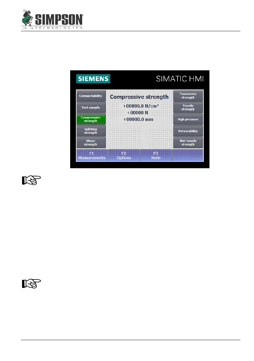 4. Select menu, "Compressive Strength," on the Operator Panel