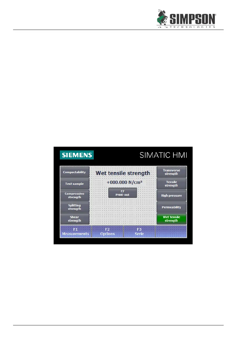 2. Select menu, “Wet Tensile Strength,” on the Operator Panel