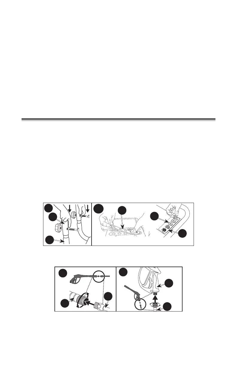 7. Attach high pressure hose (C) to gun (D). Tighten se cure ly.