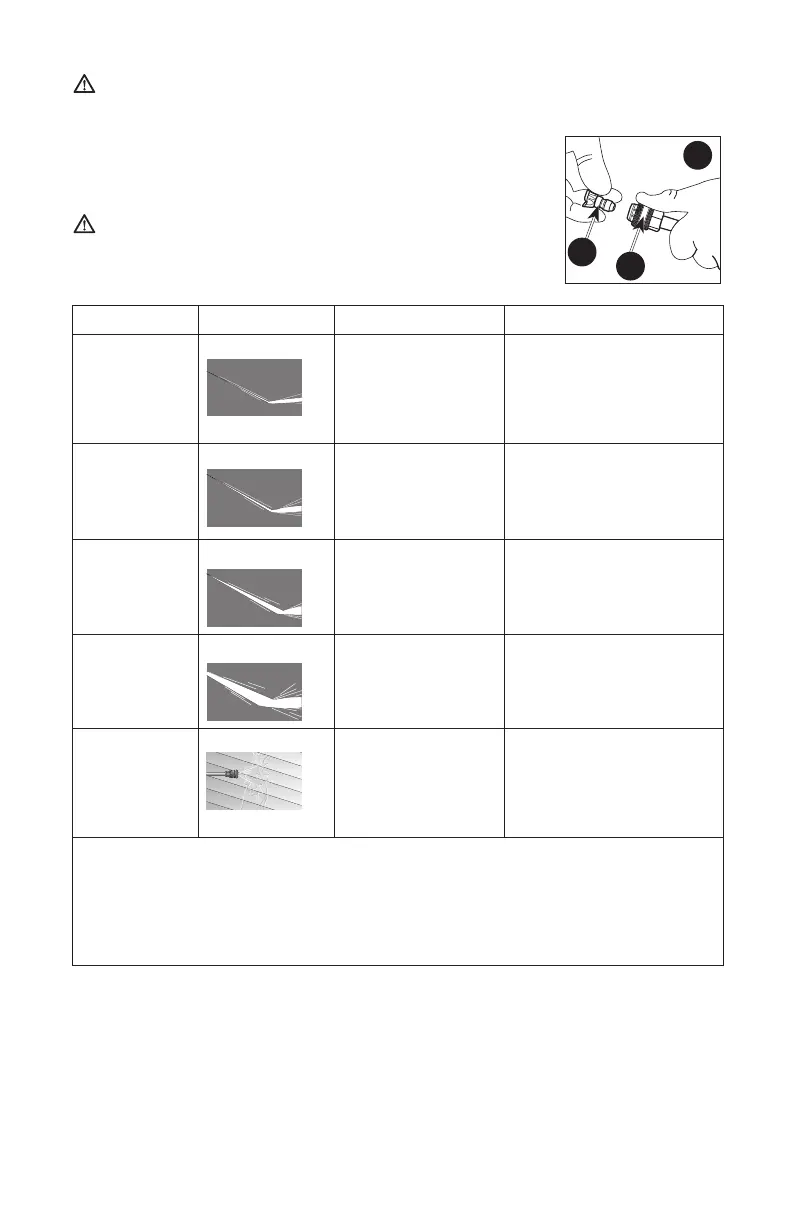 attempt to change nozzles while pressure washer is running. Turn engine off