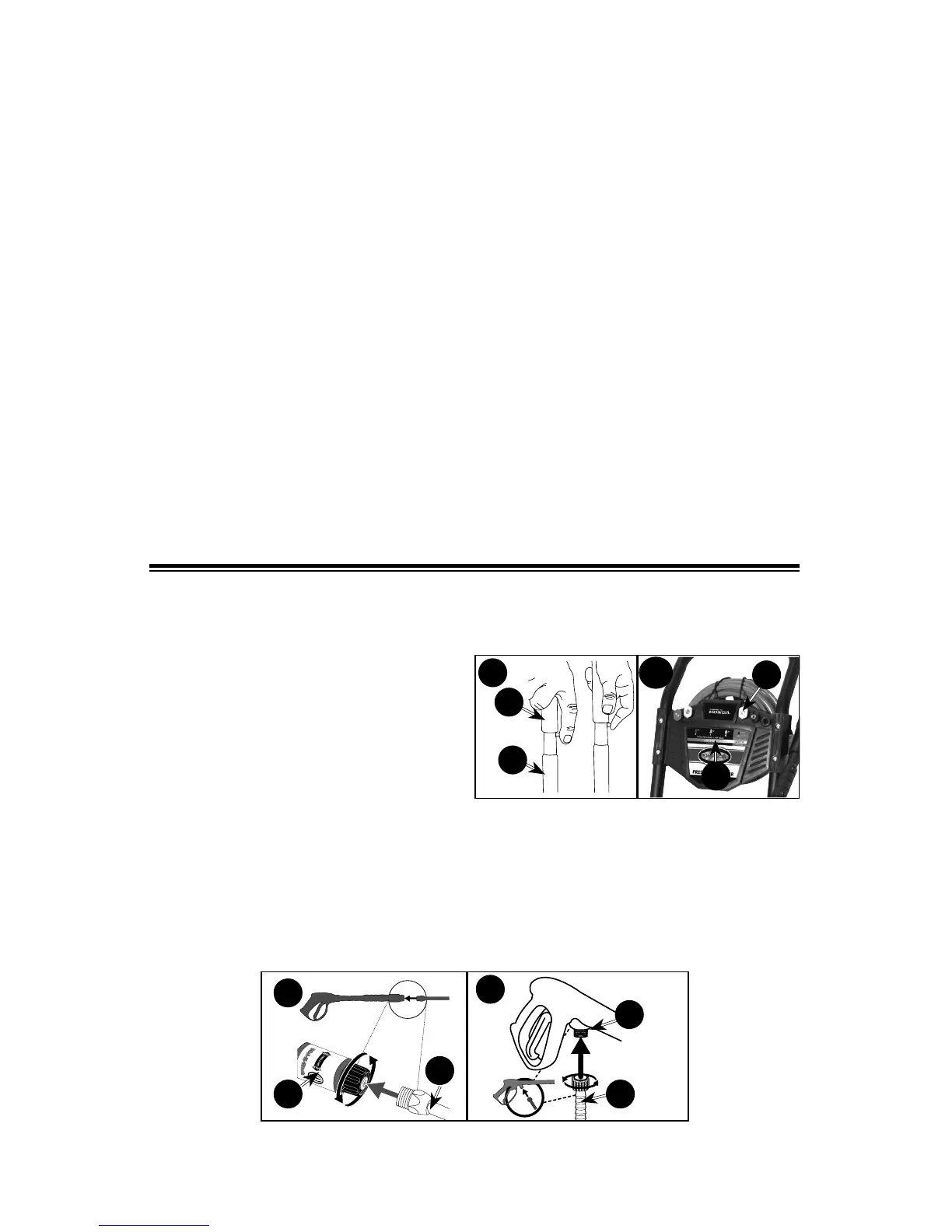 5. Attachez la lance (E) au pistolet (D) et bien serrer.