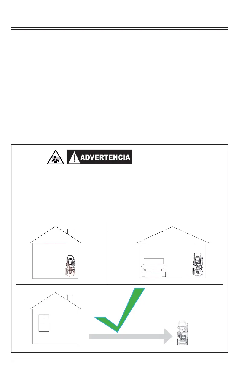 ● Nunca use la lavadora a presión dentro de una casa, garaje o cualquier otro tipo de recinto, incluso