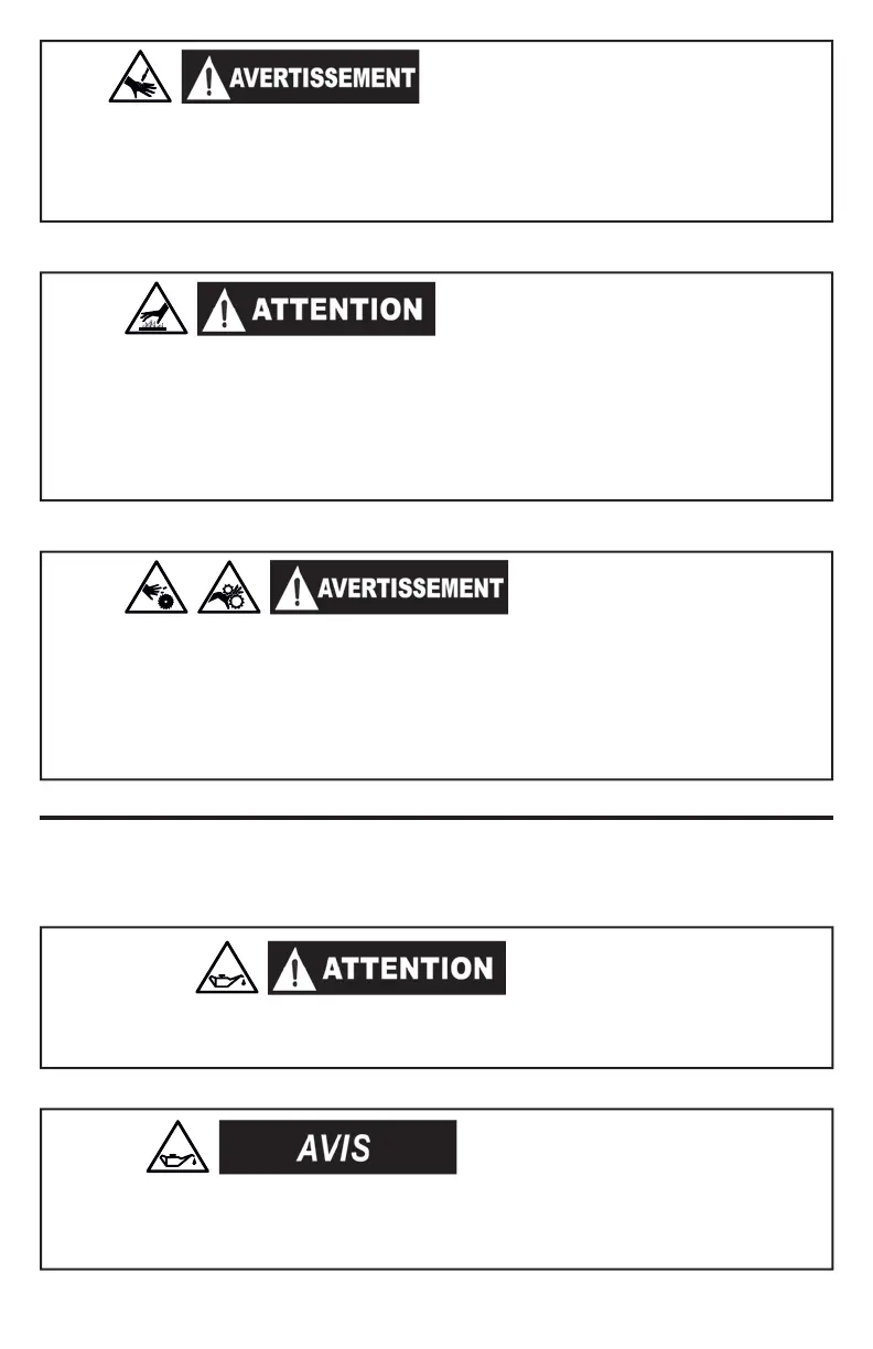 d’huile est inférieur à la limite sécuritaire. Pour éviter un arrêt inattendu, vérifi ez régulièrement le niveau