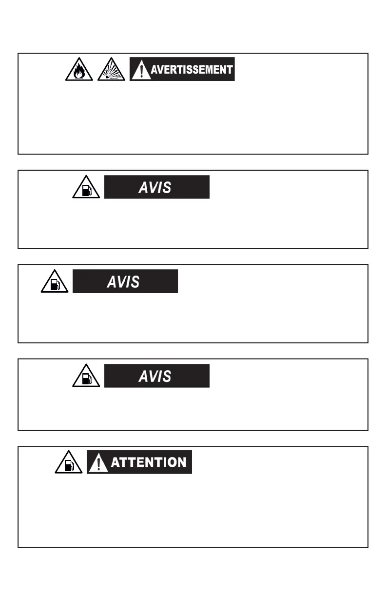 associés et éviter des réparations dispendieuses, n’utilisez pas d’essence plus ancienne que 30 jours.