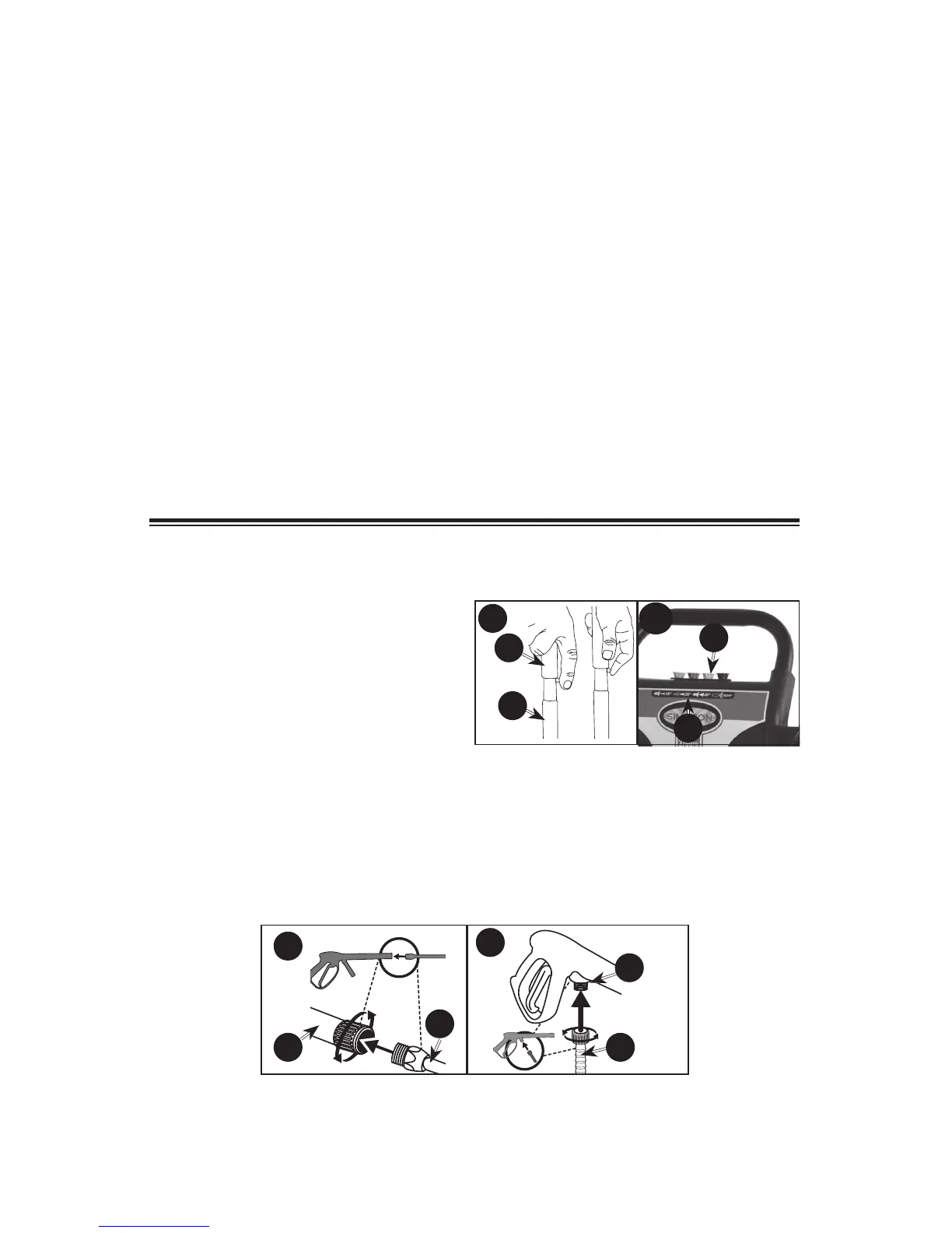 6. Attachez le boyau à haute pression (C) au pistolet (D) et bien serrer.