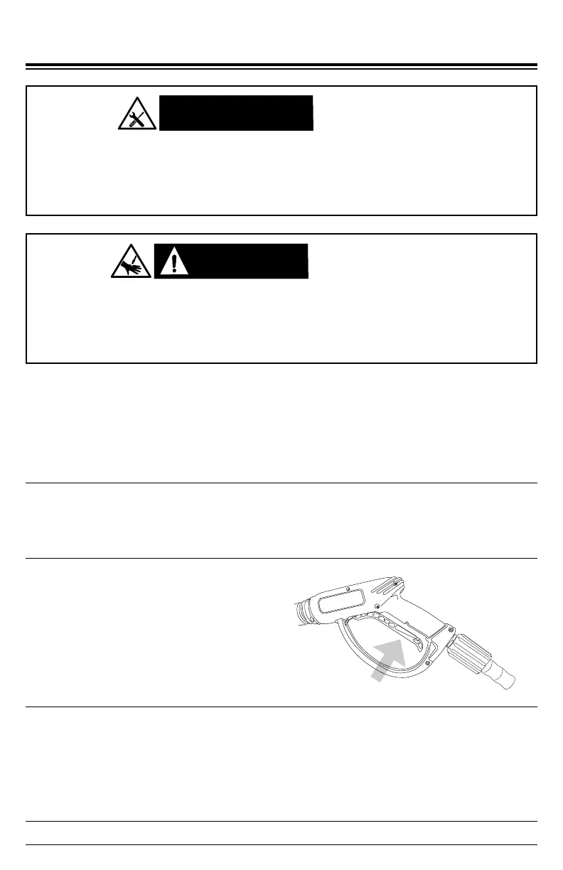 severe lacerations, amputations, and / or death. To avoid these hazards, always aim