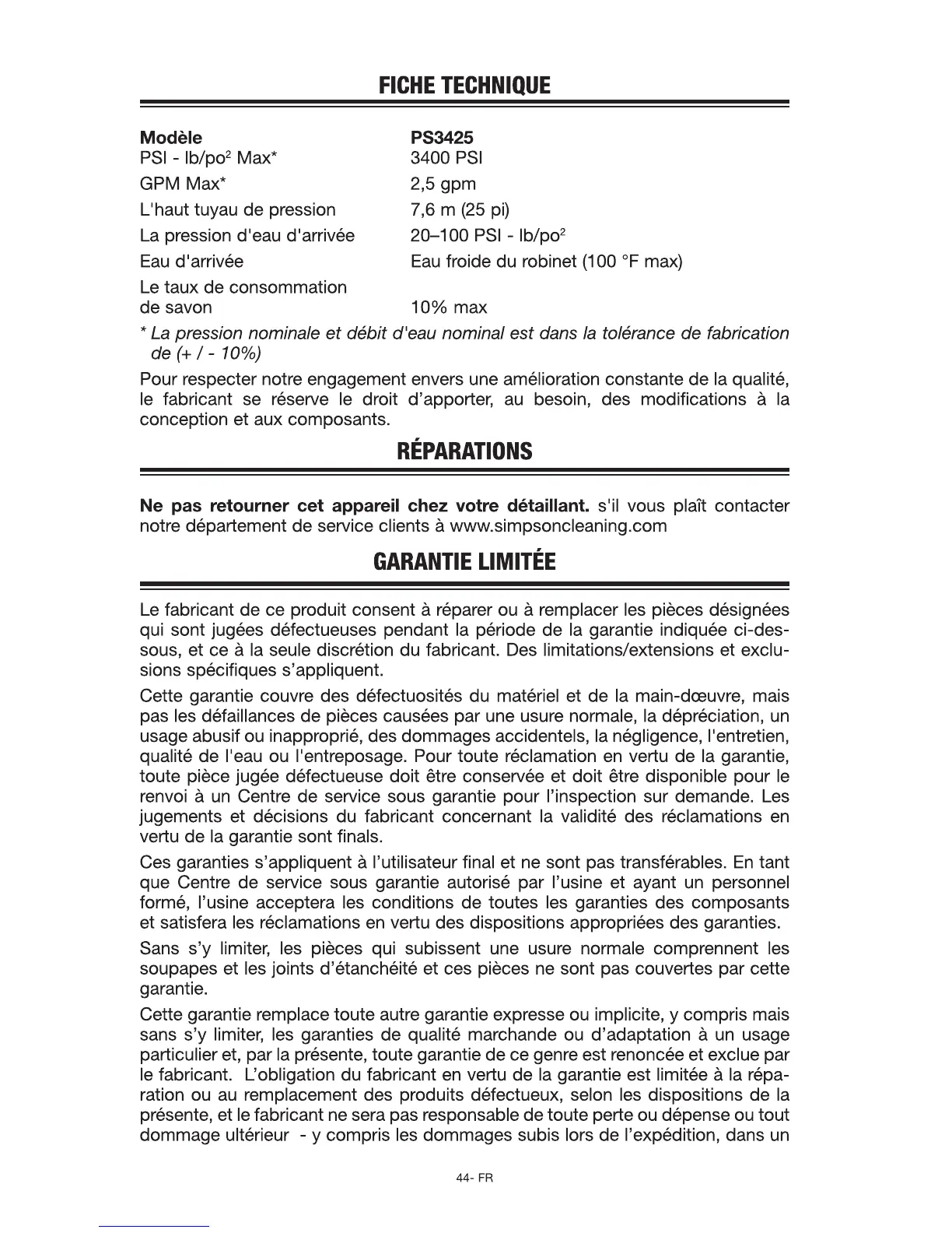 Simpson PS325 - Page 44