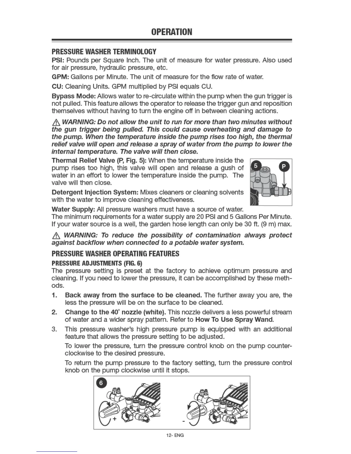 Simpson PS60841 - Operation and Pressure Adjustments; Terminology and Pressure Control
