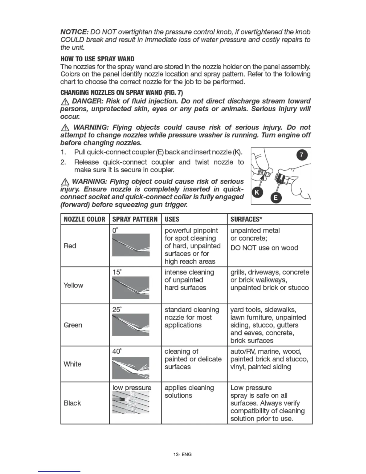 Simpson PS60841 - Using the Spray Wand and Nozzles; Nozzle Selection and Changing Guide