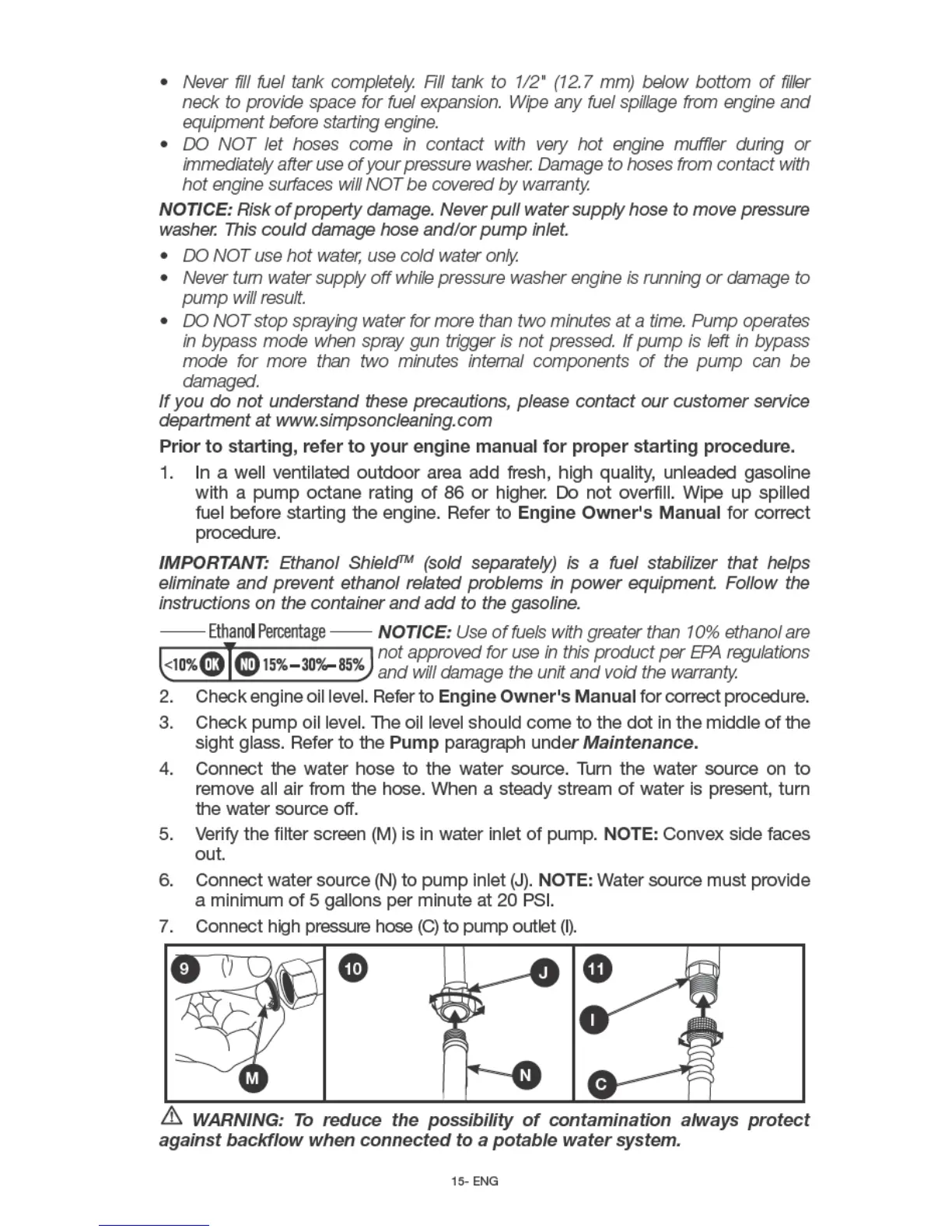 Simpson PS60841 - Pre-Start Fueling and Water Supply; Fueling and Water Connection Steps