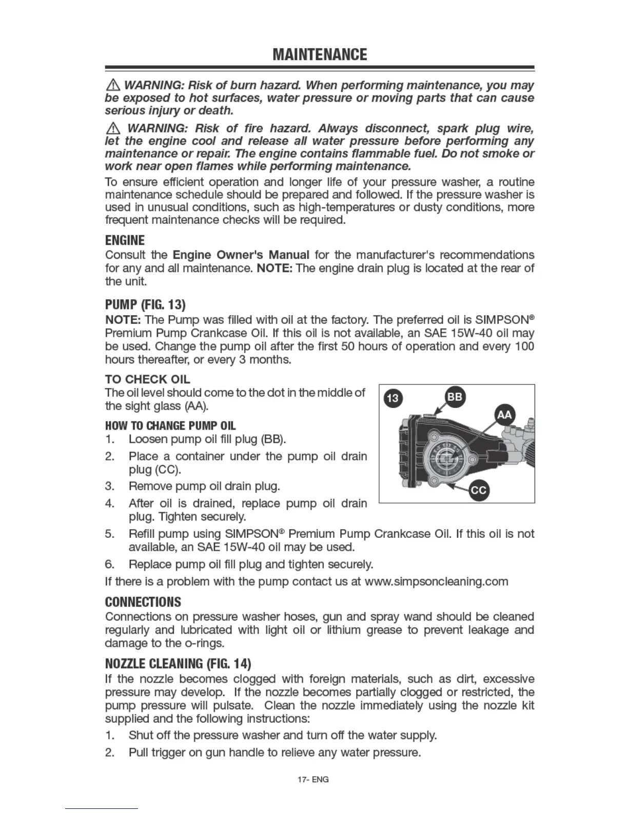 Simpson PS60841 - Maintenance and Component Care; Engine, Pump, and Nozzle Maintenance