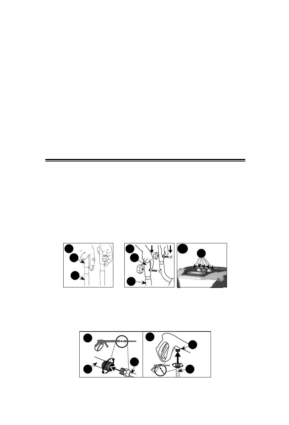 Conecte la manguera de alta presión (C) a la pistola (D) y ajústela firmemente.