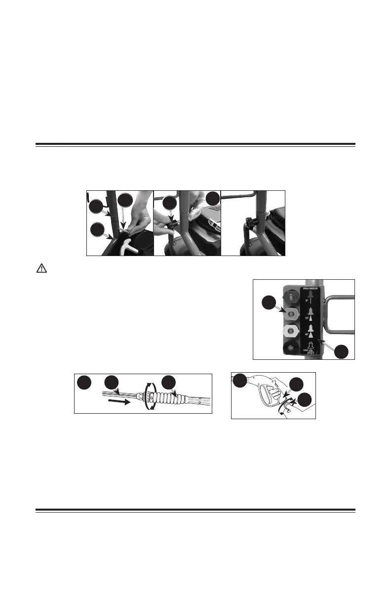6. Attach high pressure hose (C) to gun (D). Tighten