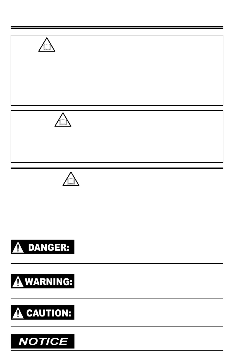 levels of hazard severity. These symbols are used throughout this manual and are followed