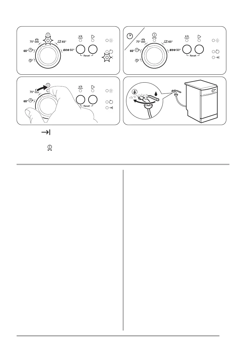 Turn the knob to . Close the tap.