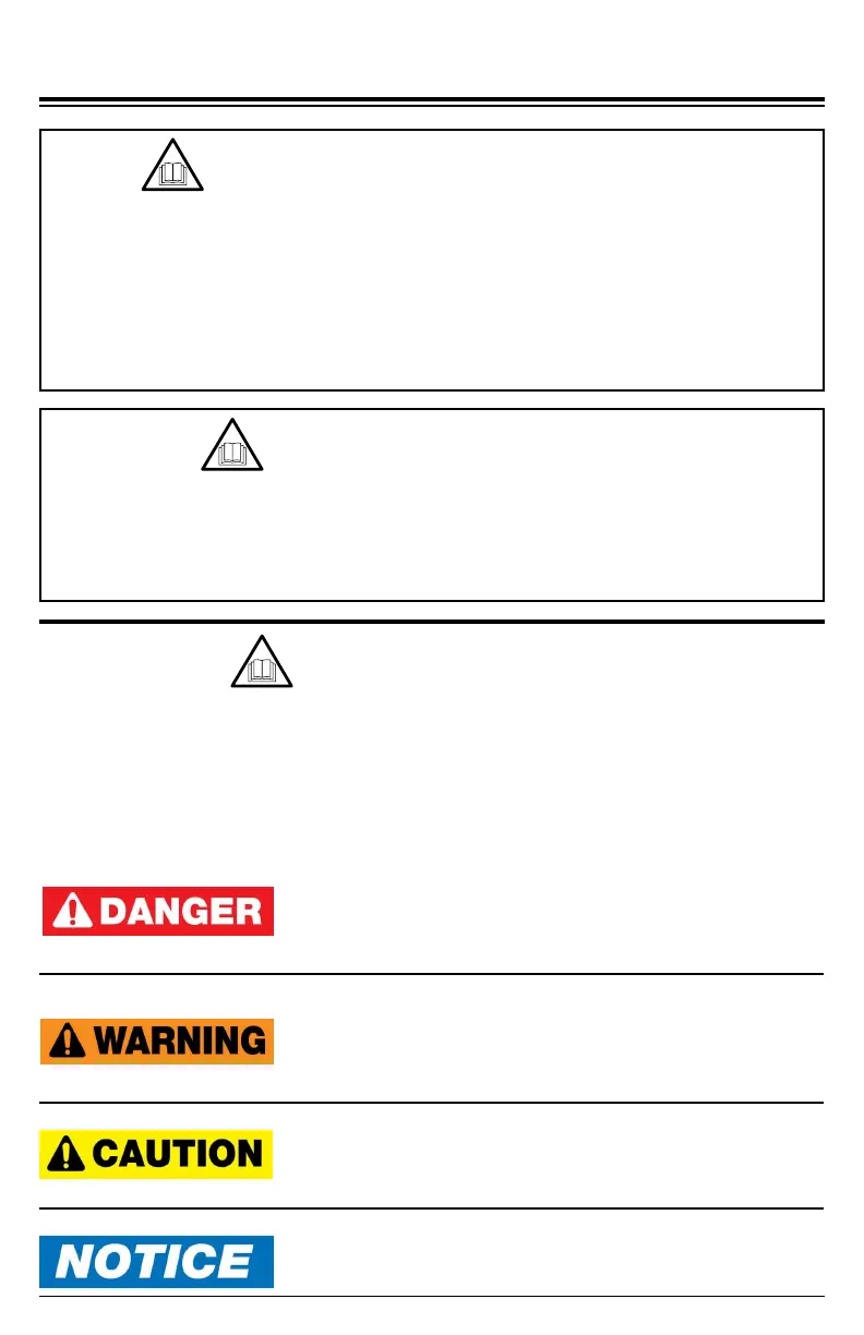 a dierent level of hazard severity. These symbols are used throughout this manual with
