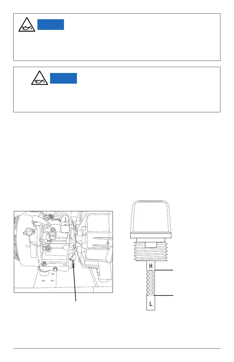 5. Si le niveau est bas, ajoutez l’huile recommandée dans le carter jusqu’à ce que le niveau