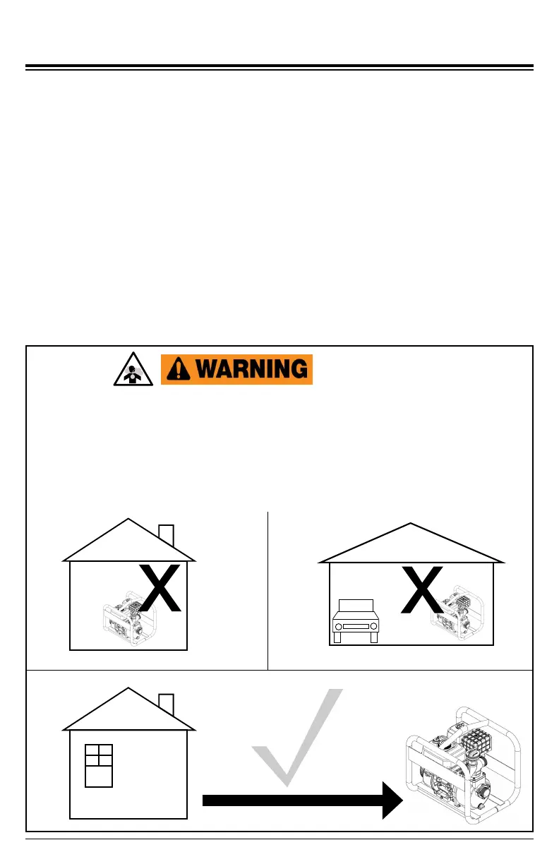 ● Never use pump inside a house, garage, or any other kind of enclosure even if doors and