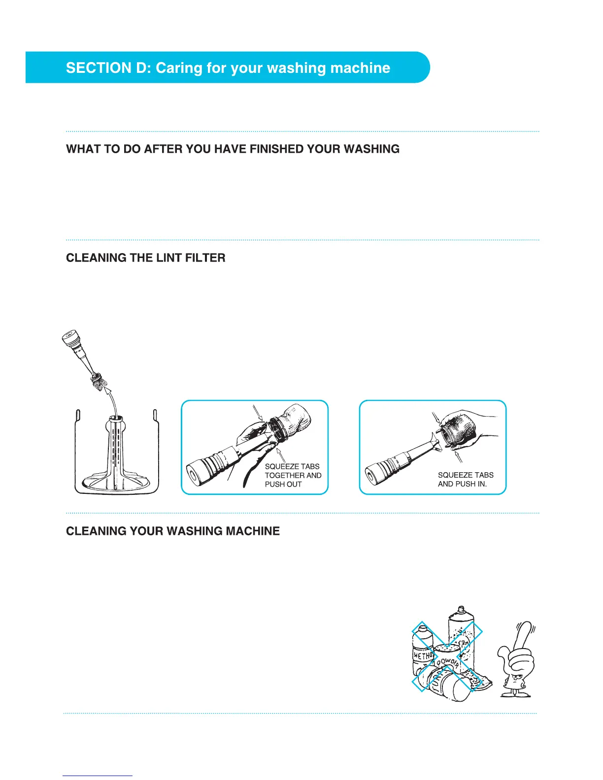 Simpson SWT5542 - Caring for Your Washing Machine; After Washing; Cleaning the Lint Filter; Cleaning Your Washing Machine