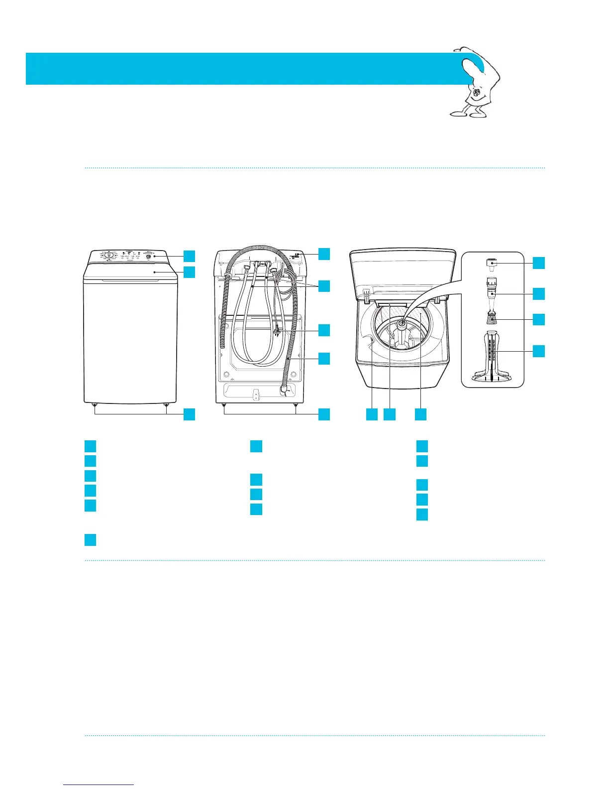 This booklet talks about different parts of your washing machine. The main ones you need to know are