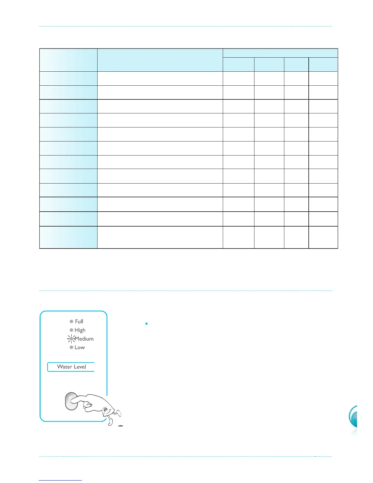 1. Choose the water level by pressing WATER LEVEL button.