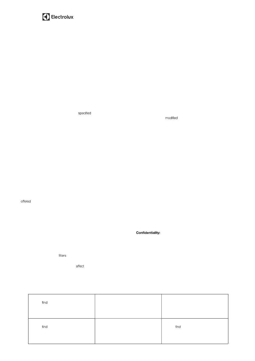 4. Repair or replace warranty: During the Warranty Period, Electrolux