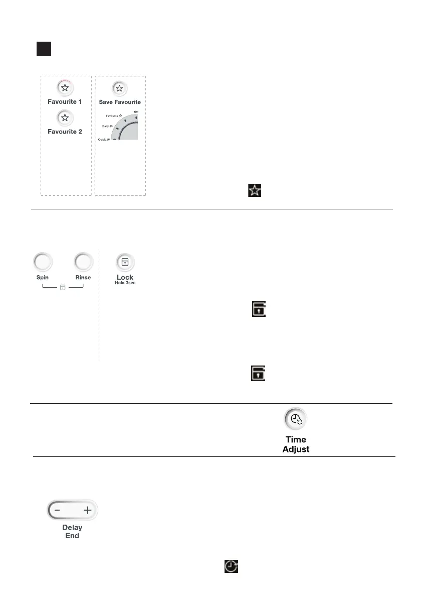 FAVOURITE , CHILD LOCK , TIME ADJUST , DELAY END BUTTON