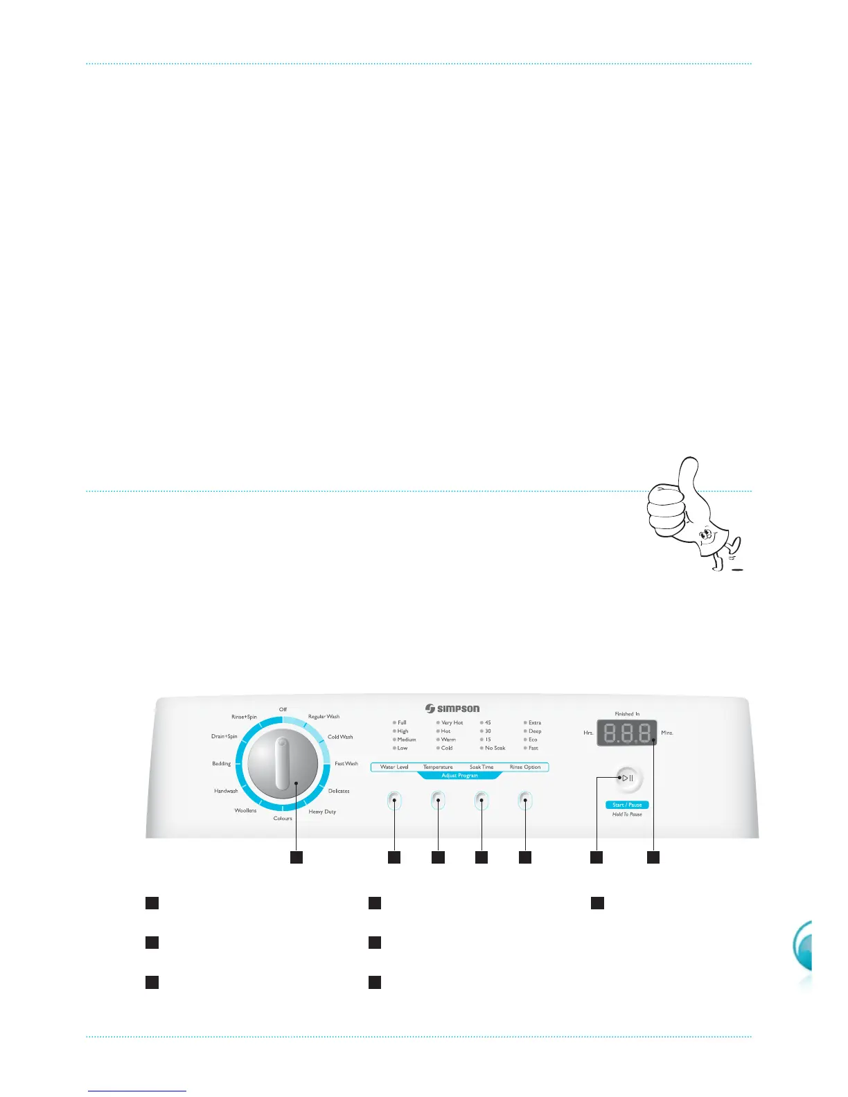 will find on the control panel of your washing machine and what the different buttons, knobs and lights are for.