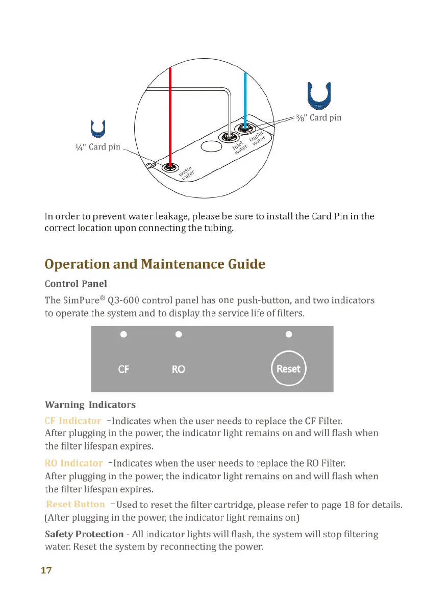 SimPure Q3-600 - Operation and Maintenance Guide; Control Panel Overview; Warning Indicators Explained; Reset Button Functionality