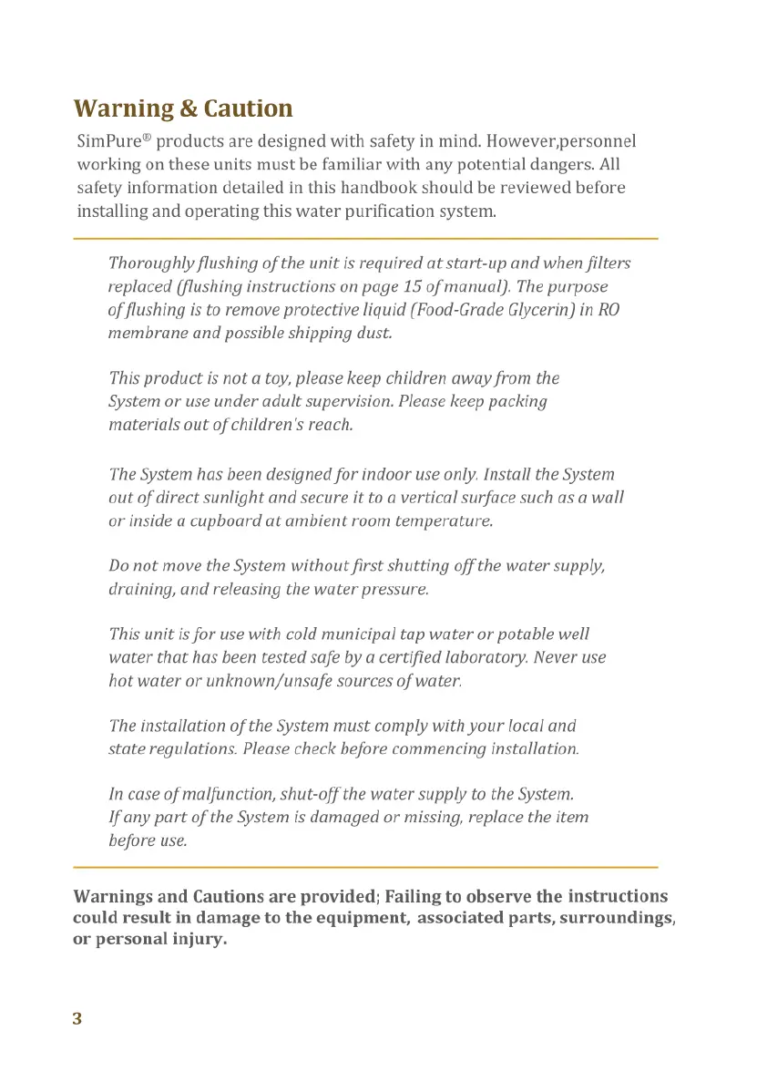SimPure Q3-600 - Warning and Safety Information; General Safety Precautions