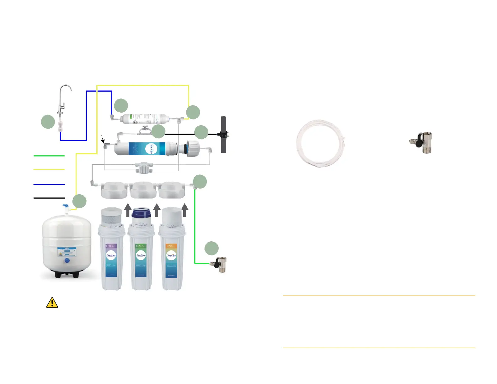 connect between (3) inlet tee of the T33 filter and (4) the valve on
