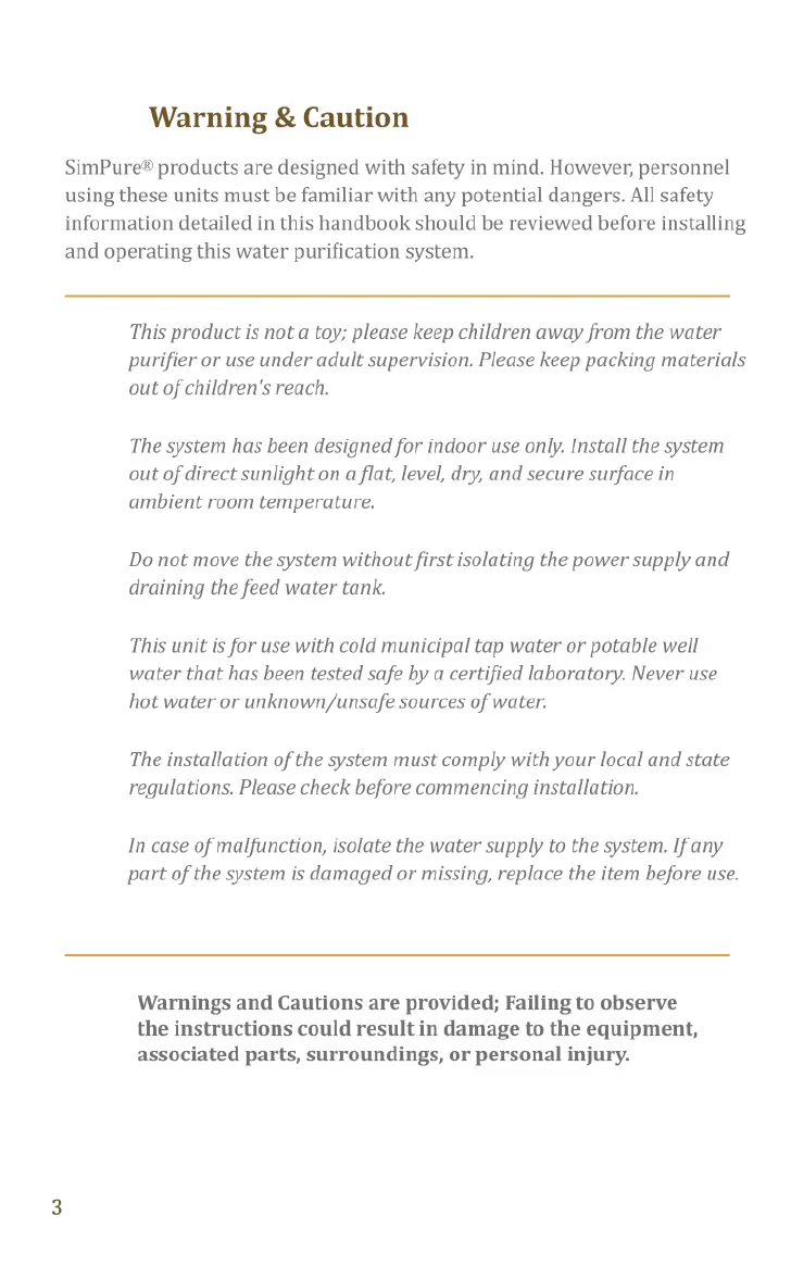 SimPure Y7P-W - Warning & Caution; General Safety Guidelines