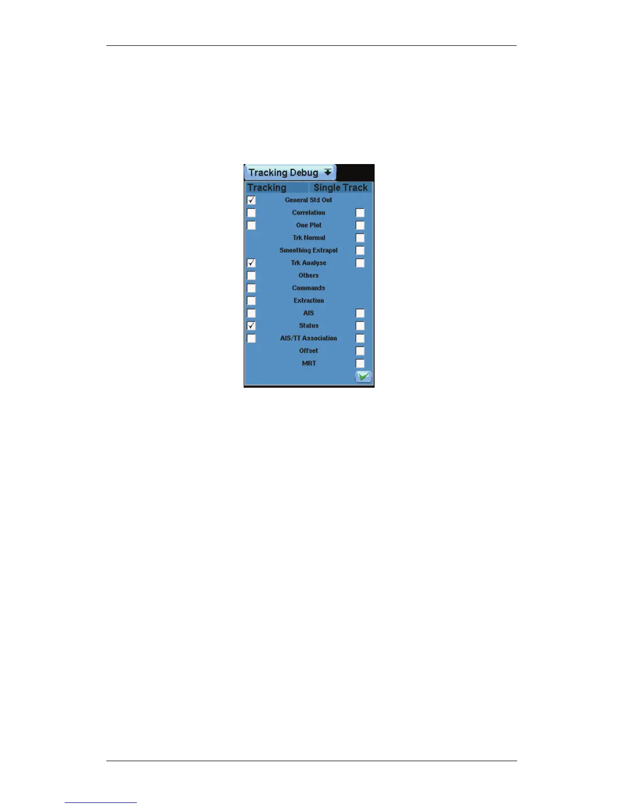 the tracking debug just by pressing the "Tracking Debug Off