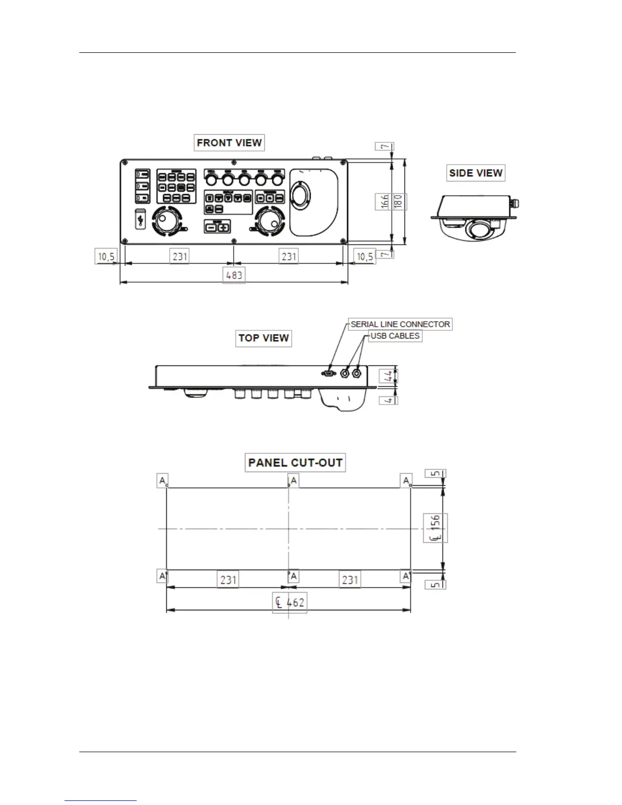 ARGUS RADAR SYSTEM – Control Panel dimensional drawing