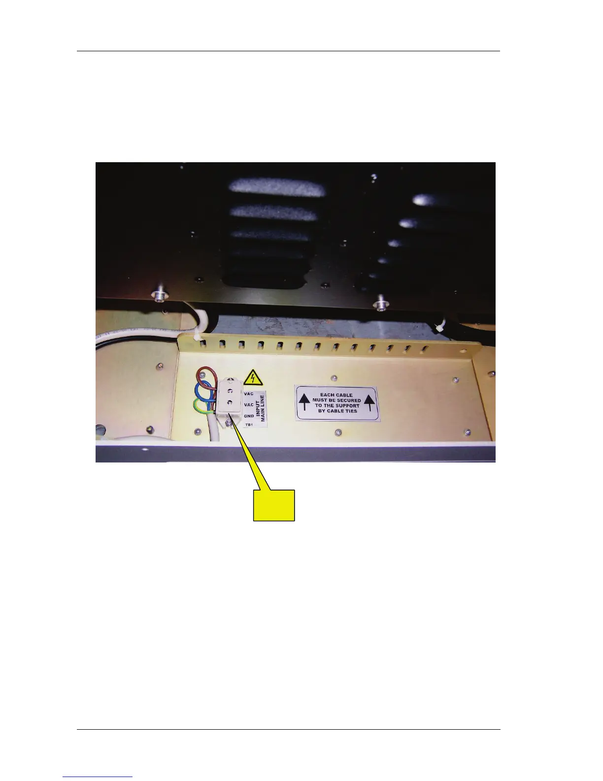 The following picture shows the terminal board (TB1) located at the bottom of the