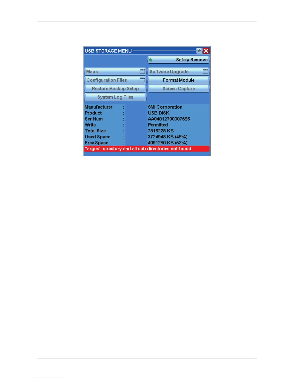 A directory named “ARGUS” shall be created in the root of the USB memory and it should