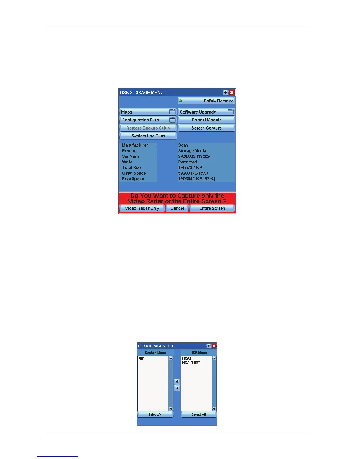 The Screen Capture function allows you to save the views of the radar in order to capture