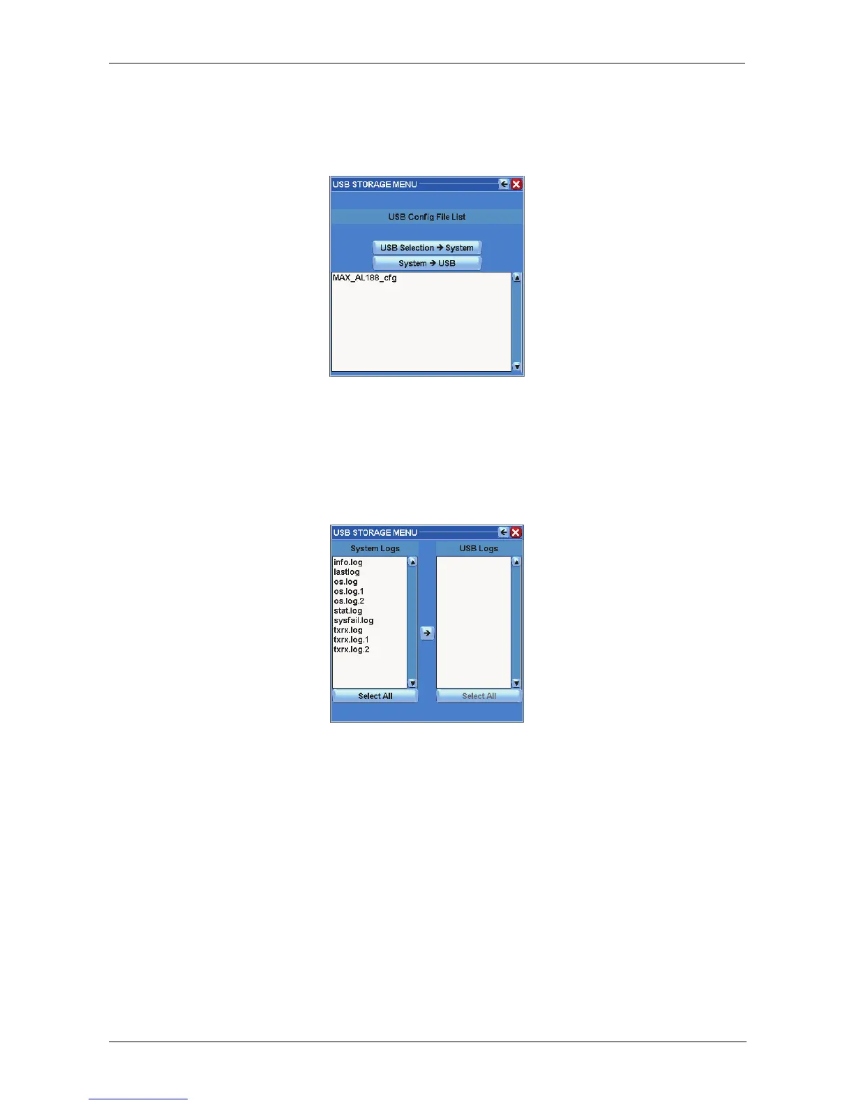 In this mode, it is possible to save or transfer system configuration log files from Argus to