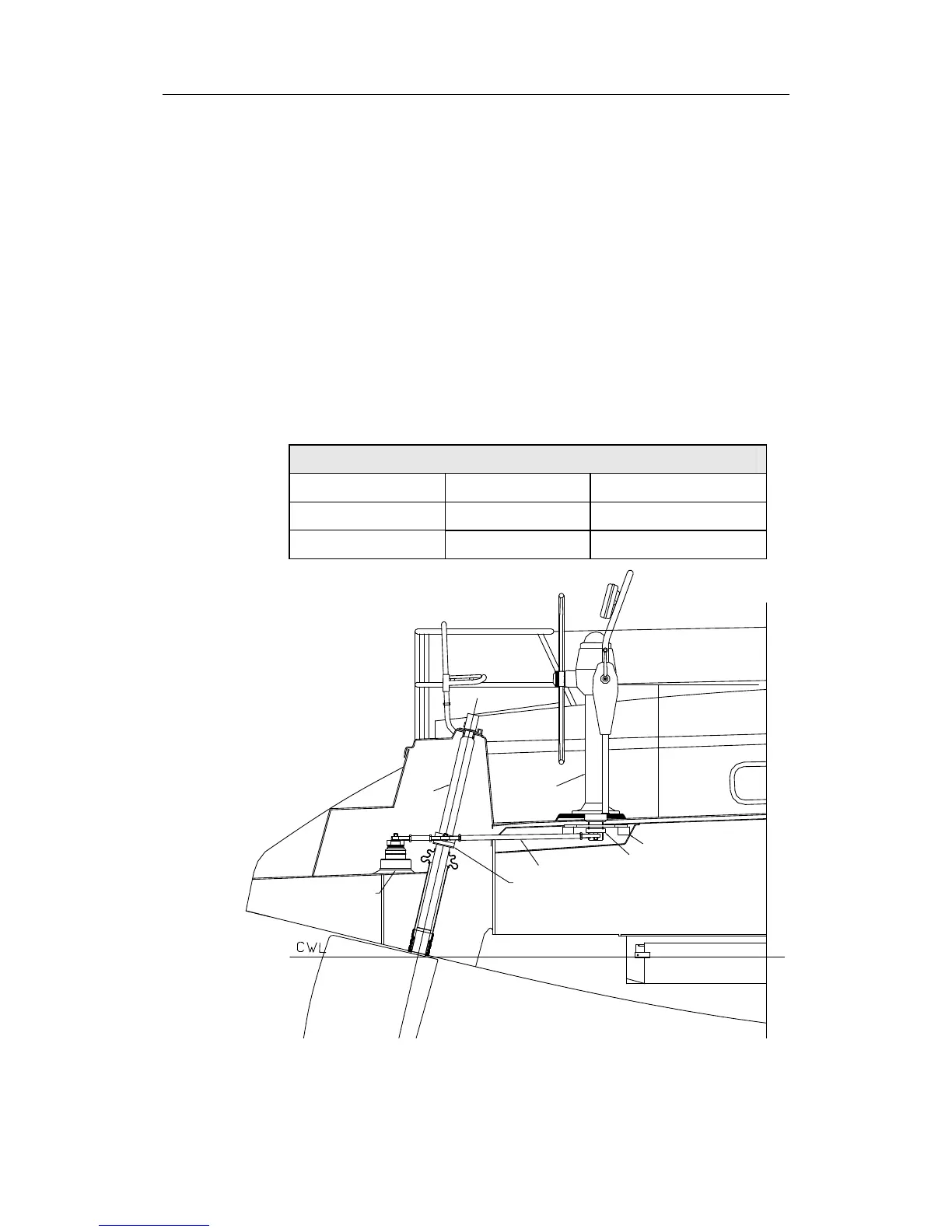 Operating centers in mm valid for 72° (2x36°) rudder travel.