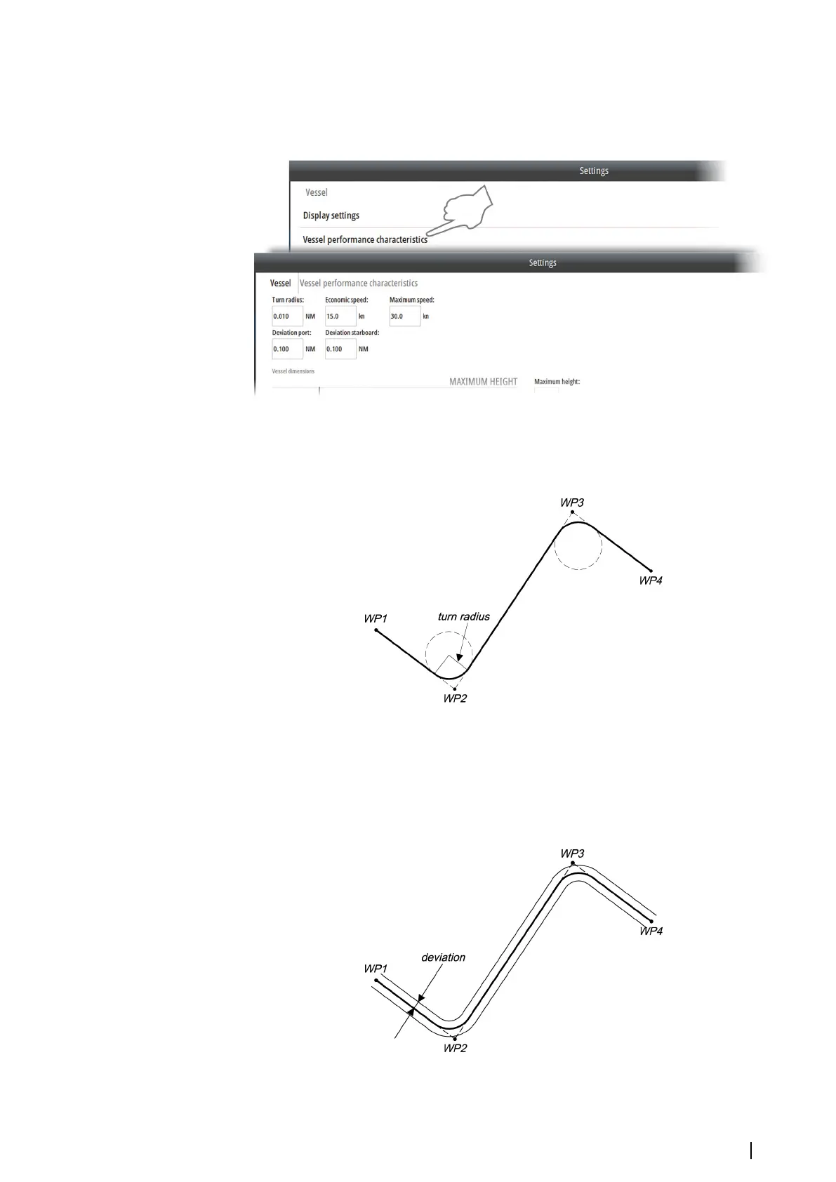 • Deviation: Defines the vessel’s offset distance from leg before an alert is given. The