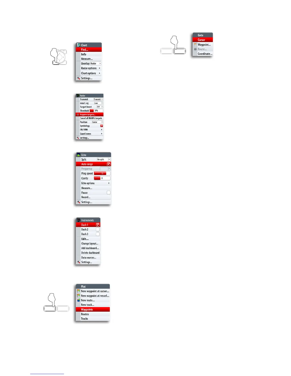 Simrad NSE8 - Context Menus; Plot Menu; Goto Menu