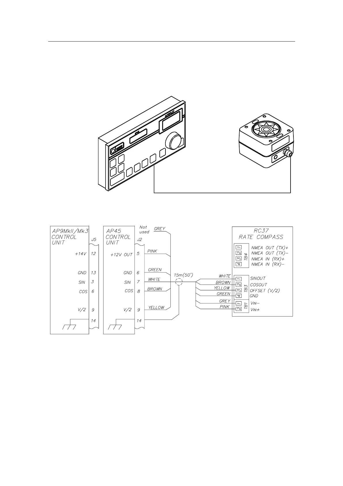 Simrad RC25 - RC37 Rate Compass; Connection to AP45 and AP9 MK3