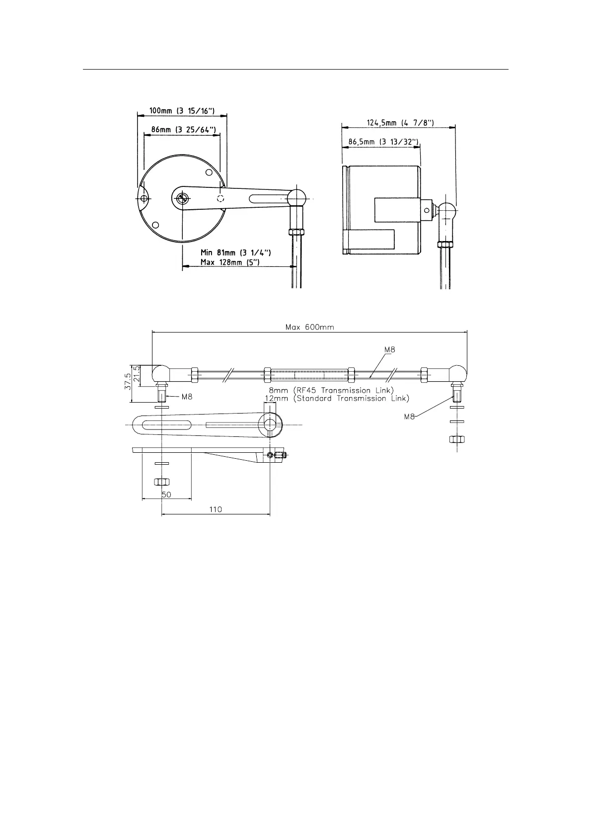 Fig. 3-2 RF45/Standard Transmission Link - dimensions
