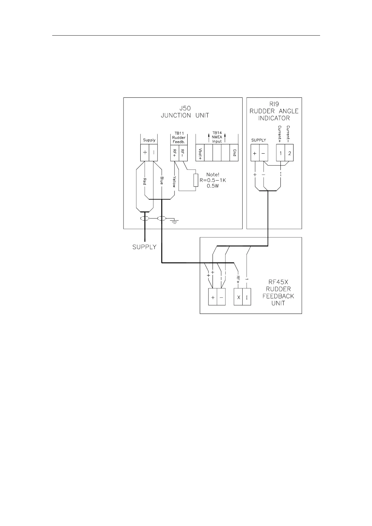 autopilot, connect indicator(s) and rudder feedback supply+ to J50