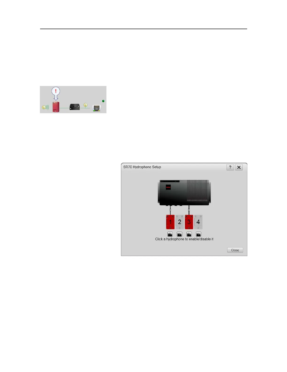 TheSR70HydrophoneSetupdialogboxshowsthehydrophonesconnectedtotheSR70